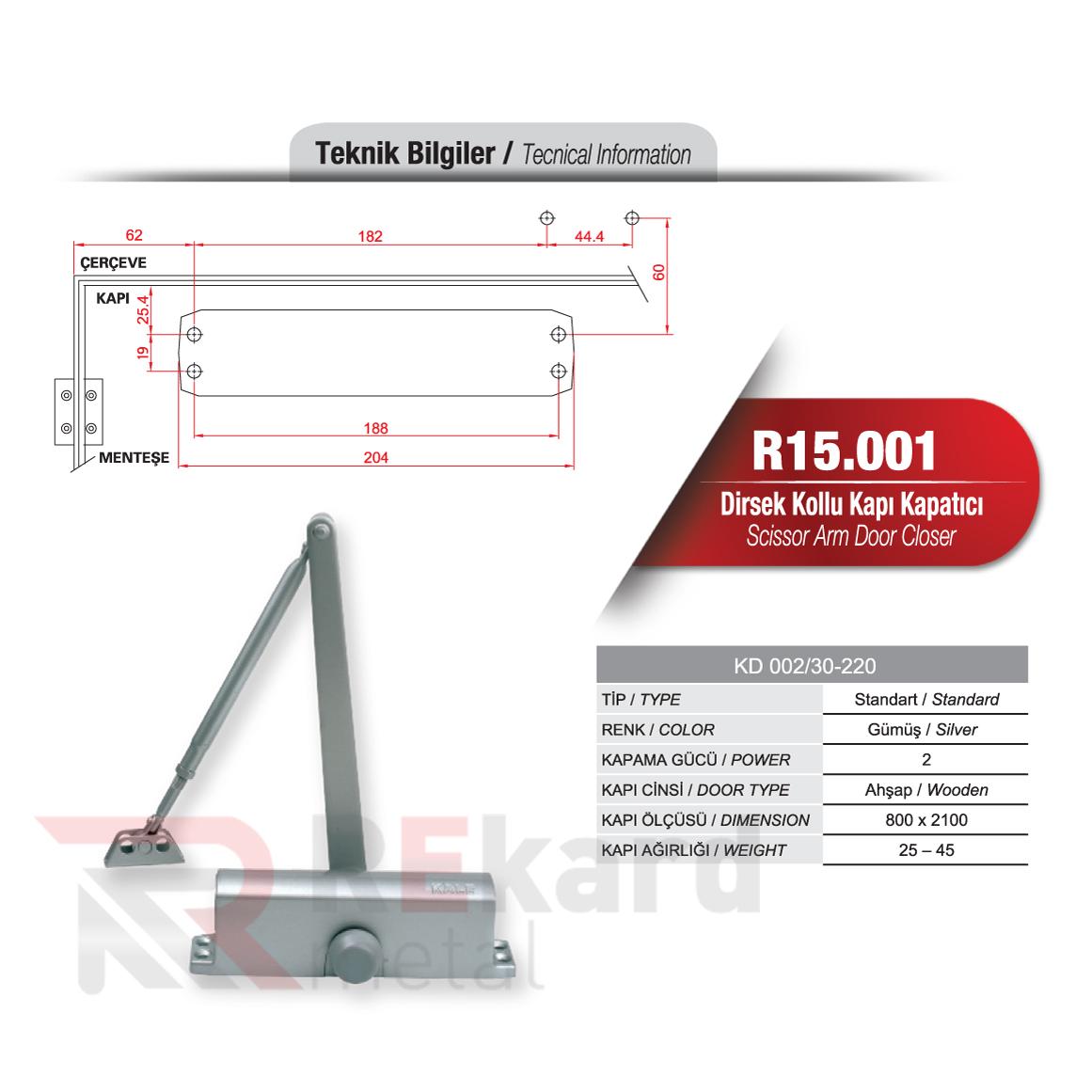 Rekard Metal bünyesinde R15.001 Dirsek Kollu Kapı Kapatıcı adlı ürünü bulabilirsiniz. Rekard Metal R15.001 Dirsek Kollu Kapı Kapatıcı ve daha birçok ürün çeşidi ile siz değerli müşterilerimize hizmet vermektedir. Rekard Metal sektöründe 20 yıllık bir deneyimle bilgisini ve varlığını alüminyum ürünler üzerine kurmuş, alüminyum profil ve sistemleri ile alüminyum aksesuar tedarikinde dünya markaların ürünlerini ihraç eden bir alüminyum şirketidir. Firmamız endüstriyel anlamda inşaat ve yapı sektörüne alüminyum profil ve aksesuar ürünlerinin satışını yaparak faaliyetlerine devam etmektedir.