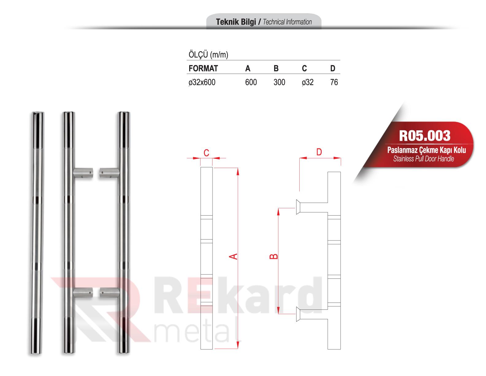 Rekard Metal bünyesinde R05.003 Paslanmaz Çekme Kapı Kolu adlı ürünü bulabilirsiniz. Rekard Metal R05.003 Paslanmaz Çekme Kapı Kolu ve daha birçok ürün çeşidi ile siz değerli müşterilerimize hizmet vermektedir. Rekard Metal sektöründe 20 yıllık bir deneyimle bilgisini ve varlığını alüminyum ürünler üzerine kurmuş, alüminyum profil ve sistemleri ile alüminyum aksesuar tedarikinde dünya markaların ürünlerini ihraç eden bir alüminyum şirketidir. Firmamız endüstriyel anlamda inşaat ve yapı sektörüne alüminyum profil ve aksesuar ürünlerinin satışını yaparak faaliyetlerine devam etmektedir.