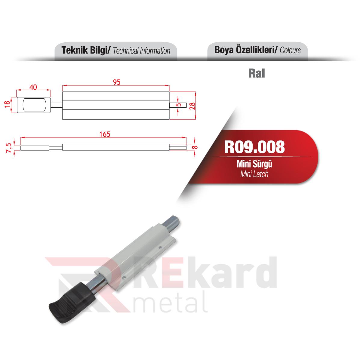 Rekard Metal bünyesinde R09.008 Mini Sürgü adlı ürünü bulabilirsiniz. Rekard Metal R09.008 Mini Sürgü ve daha birçok ürün çeşidi ile siz değerli müşterilerimize hizmet vermektedir. Rekard Metal sektöründe 20 yıllık bir deneyimle bilgisini ve varlığını alüminyum ürünler üzerine kurmuş, alüminyum profil ve sistemleri ile alüminyum aksesuar tedarikinde dünya markaların ürünlerini ihraç eden bir alüminyum şirketidir. Firmamız endüstriyel anlamda inşaat ve yapı sektörüne alüminyum profil ve aksesuar ürünlerinin satışını yaparak faaliyetlerine devam etmektedir.