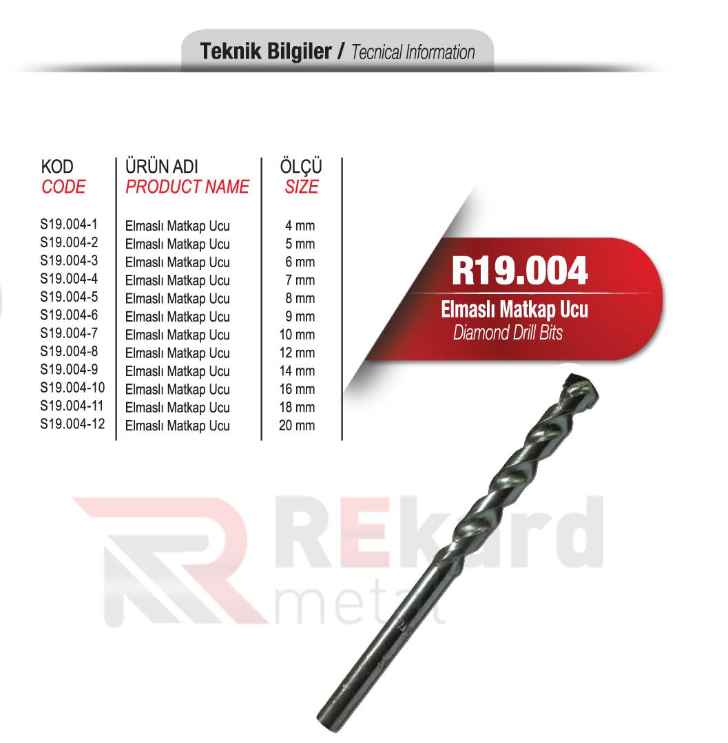 Rekard Metal bünyesinde R19.004 Elmaslı Matkap Ucu adlı ürünü bulabilirsiniz. Rekard Metal R19.004 Elmaslı Matkap Ucu ve daha birçok ürün çeşidi ile siz değerli müşterilerimize hizmet vermektedir. Rekard Metal sektöründe 20 yıllık bir deneyimle bilgisini ve varlığını alüminyum ürünler üzerine kurmuş, alüminyum profil ve sistemleri ile alüminyum aksesuar tedarikinde dünya markaların ürünlerini ihraç eden bir alüminyum şirketidir. Firmamız endüstriyel anlamda inşaat ve yapı sektörüne alüminyum profil ve aksesuar ürünlerinin satışını yaparak faaliyetlerine devam etmektedir.