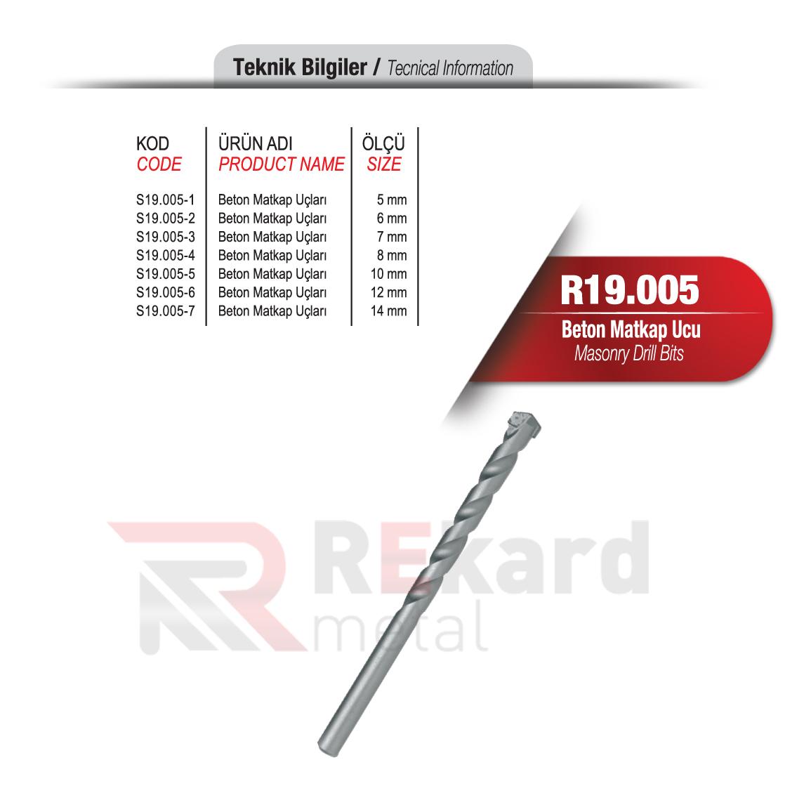 Rekard Metal bünyesinde R19.005 Beton Matkap Ucu adlı ürünü bulabilirsiniz. Rekard Metal R19.005 Beton Matkap Ucu ve daha birçok ürün çeşidi ile siz değerli müşterilerimize hizmet vermektedir. Rekard Metal sektöründe 20 yıllık bir deneyimle bilgisini ve varlığını alüminyum ürünler üzerine kurmuş, alüminyum profil ve sistemleri ile alüminyum aksesuar tedarikinde dünya markaların ürünlerini ihraç eden bir alüminyum şirketidir. Firmamız endüstriyel anlamda inşaat ve yapı sektörüne alüminyum profil ve aksesuar ürünlerinin satışını yaparak faaliyetlerine devam etmektedir.